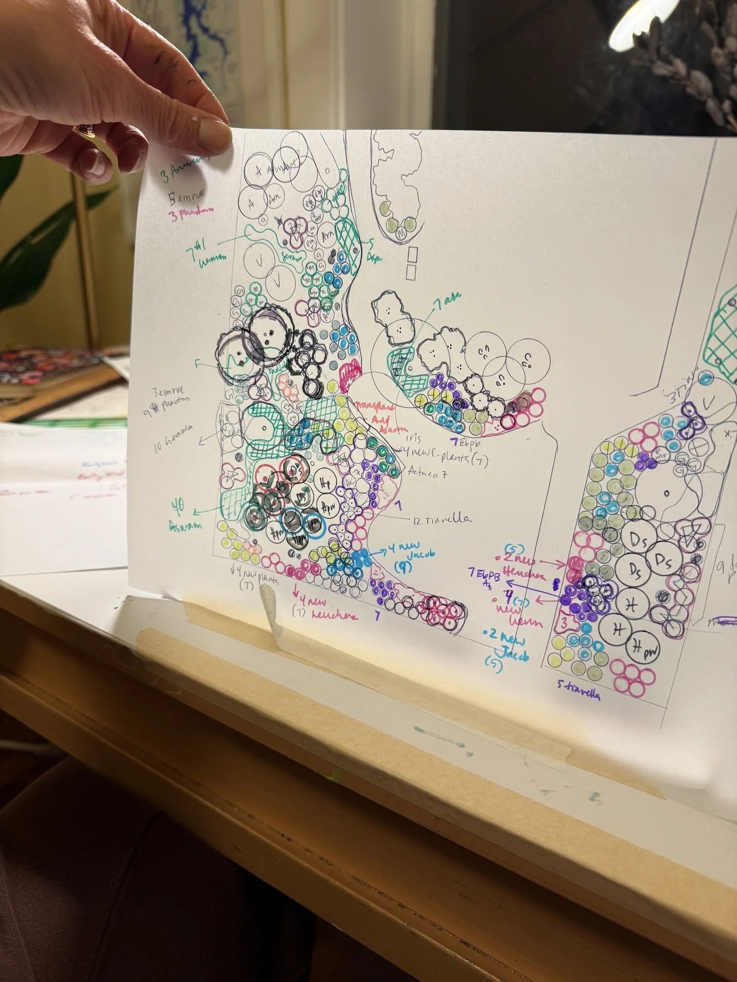 A Master Plan is the completed final drawing. Measurements, plant species and quantities are labeled here. The Master Plan is discussed in person or over Zoom. The original drawing and a PDF will be presented to clients.